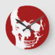 Relógio Redondo Crânio - Arte de Fantasia de Metal Vermelho e Bran