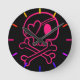Relógio Redondo Crânio e ossos do Coração Rosa