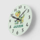 Relógio divertido com um design de dinossauro fofo, personalizável com seu nome. Perfeito para crianças que amam dinos e querem um toque lúdico para o seu quarto!