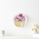 Relógio Redondo Cupcake rosa com cereja