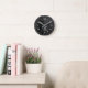 Easily personalize this trendy elegant clock design featuring pretty black sparkling glitter on a black brushed metallic background.