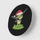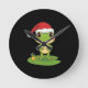Relógio Redondo Cute Cartoon Frog Character Wearing a Santa Hat on