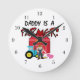 Este Pai de design giro é uma T-shirts, bibs, panos de arroto, cobertores, placas, travesseiros, keepsakes e outros itens possuem um celeiro vermelho, pai de fazendeiro, porco e trator azul