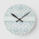 Relógio Redondo Damasco Azul Suave Com Etiqueta Branca