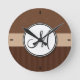 Relógio Redondo Damasco castanho de couro com tiras e monograma