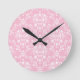 Relógio Redondo Damasco Rosa e Branco