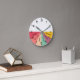 Este relógio apresenta um cronograma codificado por cor para o seu filho, que inclui as atividades da tarde/noite de leitura, dever de casa, tempo de jogo, janto, hora do banho e hora de deitar. Púrpura, amarela, pinças e verde-menta.