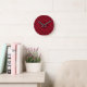 Relógio Redondo Deep Red Quilted Leather Pattern