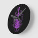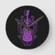 Relógio Redondo Design de Violão de Baixo Roxo em Preto
