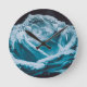 Relógio Redondo Dewdrops Em Um Rosa De Zen Azul.