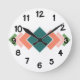 Este relógio de parede tem um design Bauhaus de sete diamantes sobrepostos que se sobrepõem correndo verticalmente ao longo do item em cores retrorativas de azul, rosa e verde.