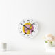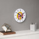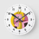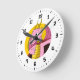 Relógio com ilustração da cabeça de um pequeno dragão voador rosa giro, em círculo amarelo, fantasia fofa / design de conto de fadas para crianças por Maxi Harmony