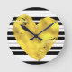 Relógio Redondo Dourado Coração e Listras