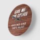 Relógio Redondo Engraçado Me Dê O Café Rustic Wood Modern