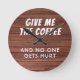 Esta engraçada design de café diz "Dê-me o café e não se machuque" em tipografia branca em negrito sobre um fundo de madeira rústica. Excelente para o amante do café colocar na cozinha ou para o compro do café.