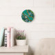 Relógio Redondo Esmeralda Verde & Glitter de Grelha de Agato Doura