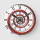 Um muro com numerais romanos e uma espiral vermelha desaparecendo no infinito.