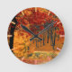 Lindas árvores vestidas de folhas vermelhas e amarelas no pico do outono.