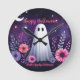Relógio Redondo Fantasioso Fantasma e Floral Assustador Rosa Roxo