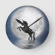Acrescente a fantasia e a magia de um unicórnio silenciado contra uma lua de cheio que se ergue no oceano - relógio de parede redonda para arte, parede e decoração domiciliar. Personalize com o nome, as iniciais, a mensagem, a citação - ou qualquer coisa que você desejar. Esta Silhouette Unicorn Personalizada Round Clock é uma ideia de presente de excelente.