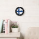 Relógio Redondo Elegante de Bandeira da Finlândia com a bandeira da Finlândia posicionada no meio e adoráveis números de relógio brancos no bordo do relógio. O delicioso fundo preto com os elementos ovais brancos finaliza o design, colocando ênfase na elegância. A bela combinação de preto e branco com a hábil integração das cores da bandeira nacional faz deste relógio o presente perfeito e a peça do excelente na parede. © 2022 PaísesDoMundo