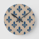 Relógio Redondo Fleur de Lis Pattern, Royal French Blue em Creme