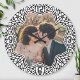 Este lindo e personalizado design de relógio de parede inclui sua fotografia personalizada no centro de uma forma de mandala de flores de linhagem preta. Carregue uma foto de qualquer forma e ela preencherá automaticamente o quadro floral. É perfeito para o Dia de os namorados, como presente de casamento ou aniversário - ou para qualquer momento que você quiser mostrar sua foto favorita. Para adicionar sua foto, basta usar o modelo fácil. Encontre modelos de fotos mais divertidos em nossa loja aqui: https://www.zazzle.com/store/picturecollage