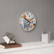 Relógio Redondo Flores Laranja De Cor Maranja Azul Design 347