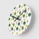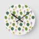 Este relógio de parede tem uma design escandinava repetindo uma floresta em marrom e tons de estrelas verdes e amarelas.