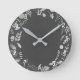 Relógio Redondo Folhas Botânicas Cinza Prata Personalizadas