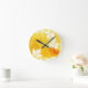 Relógio Redondo Folhas de mapeador de aquarela amarelo moderno