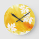 O mapeador de aquarela amarelo moderno deixa relógio de parede. Os adoráveis elementos desta design são as folhas de maple branco no brejo amarelo e laranja de aquarela.
