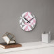 Relógio Redondo Framboesa rosa e ZigZag geométrica de prata