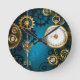 Turquesa, texturizada, fundo steampunk com latão e engrenagens douradas, chave prateada e relógio. Estilo Steampunk.