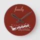 Relógio Redondo Fundo Vermelho com Papai Noel e Reindeer