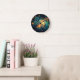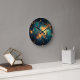 Relógio de galáxias cósmicas com na moda de Glam. Relógio de arte em parede em várias formas e tamanhos. Um belo mundo entre as estrelas com tons verdes legal e um pop quente de detalhes amarelo e laranja.