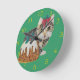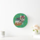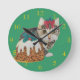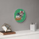 Este gatinho pequeno bonito do gato malhado do Natal está vestindo um arco vermelho muito bonito com um azevinho do Natal em sua cabeça e está olhando muito satisfeito com si mesma enquanto lambe o creme do pudim do Natal de suas patas com sua língua cor-de-rosa pequena. Seus olhos grandes do gatinho mostram quanto está apreciando seu deleite especial do Natal. A imagem bonito do gatinho está realmente para fora contra o fundo verde christmasy, e os números festivos do ouro neste pulso de disparo redondo são corajosos e fáceis de ver. Eu penso que este pulso de disparo redondo original do Natal faz um presente original para qualquer um, amigos, família, colegas e todos os amantes do gato quererão ser o proprietário de seu próprio pulso de disparo especial do gato de gato malhado do Natal durante a época natalícia. Ou talvez você apenas quer tratar-se a um pulso de disparo bonito do gatinho do Natal