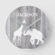 Relógio Redondo Girafa e elefante na Cinza Sala de Bebê