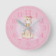 Personalize este relógio de girafa fofa para a mamãe, para adicionar ao berçário do bebê. Fundo rosa com estrelas brancas e uma girafa adorável. Perfeito para menina.