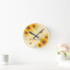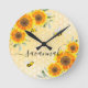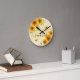 Relógio Redondo Girassóis amarelos abelhas monograma script rústic