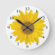 Relógio Redondo Girassol Amarelo Brilhante no Floral Branco