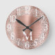 Este relógio elegante apresenta fundo de metal escovado rosa dourado com borda brilhante de prata. Adicione seu nome e inicial para um toque pessoal.