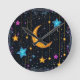 Relógio Redondo Grande lua crescida e numerosas estrelas