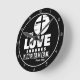 An impactful art piece featuring the words HIS LOVE ENDURES FOREVER in white lettering on a black background, accompanied by a cross and Psalm 136:1. The design includes a bold white cross within a circular emblem, emphasizing the spiritual message. A powerful item perfect for expressing faith and devotion.