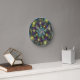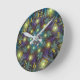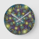 Relógio Redondo Illuminated Abstract Shiny Teal Purple Fractal Art