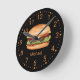 Relógio Redondo Ilustração de Comida Rápida Hamburger com Nome Per