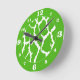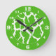 Este relógio de impressão animal apresenta um design de girafa branca e verde limão . O anel externo tem números brancos para marcar as horas. Os números maiores marcam cada trimestre de hora.