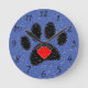 Impressão de pata de cão e desenhos vermelhos. Efeito de impressão de papel claro e antigo aplicado à imagem. Relógios de parede. Arte de desenho animado. Ideia de presente para amantes de cães de todas as idades.