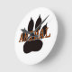 Uma pata preta e impressões de garra com texto castanho. Design original.