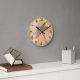 Uma bela libélula em metal de bronze corporativo que tem o aspecto de Steampunk ou algo Vitoriano, enfeita o centro deste relógio de parede único. O fundo cor-de-rosa abstrato adiciona ao recurso.